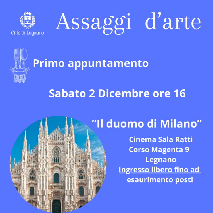 Al via, sabato 2 dicembre 2023 alle ore 16.00 il primo appuntamento del ciclo di conferenze dedicate ad artisti e città d’arte italiane con degustazioni di cibi e vini locali d’eccellenza ispirati al tema delle conferenze tenute da Ruggero Cioffi e organizzate dal Comune di Legnano in collaborazione con Slow food Legnano.